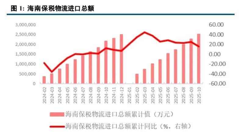 加工增值政策从最初的粮油、肉类加工,扩展到医药、咖啡、珠宝等高附加值产业,推动“保税+制造”融 合模式。截至 2025 年 10 月,海南自由贸易港加工增值货物内销免关税政策获批试点企业共 129 家,加工增值 内销货值约 110.96 亿元,免征关税约 8.6 亿元。覆盖行业从最初海关特殊监管区内的粮油、肉类等产业,扩大 到如今区外的医药、咖啡、珠宝等加工领域。预计封关运行后,政策有望扩大产业范围,优化增值计算方式, 进一步降低企业合规成本。