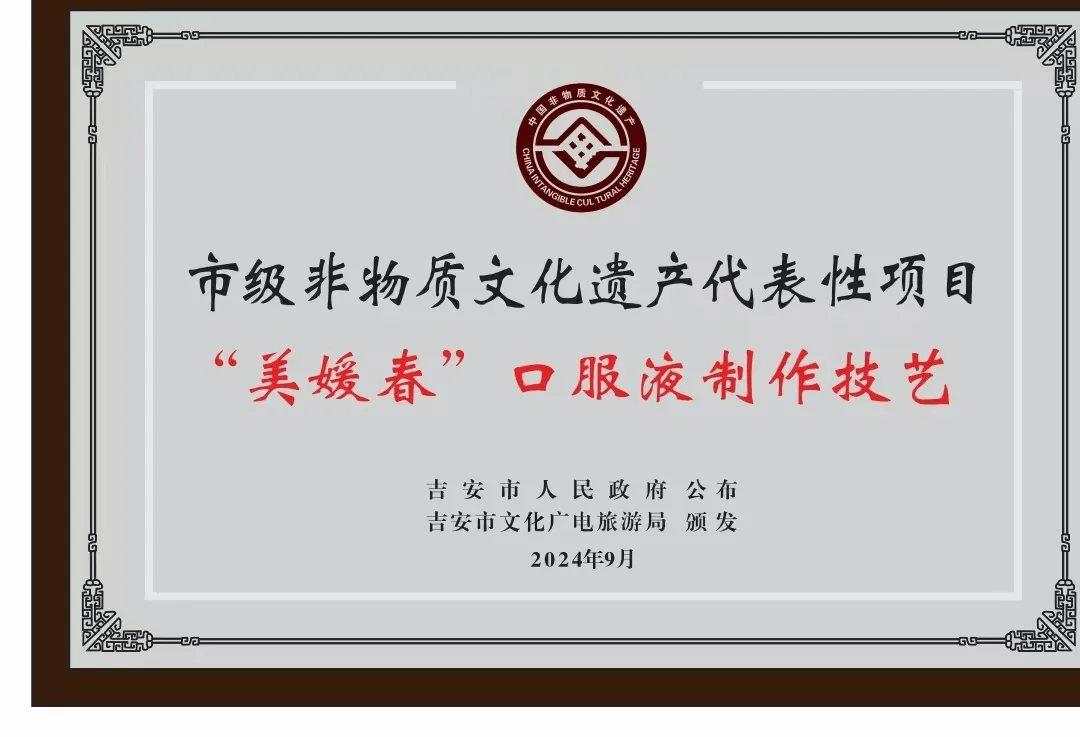 至 2024 年,美媛春更是殊荣加身,被列为吉安市第七批市级非物质文化遗产代表性项目,如文化遗产宝库中的一颗明珠,不仅深刻诠释了中国传统医药文化的渊远流长与博大精深,亦成为地方文化传承与创新发展的核心载体。在政府的鼎力扶持与企业的不懈努力下,这一古老技艺如浴火凤凰,在传承中创新,在创新中发展,焕发出全新的活力与魅力,成为江西乃至全国文化名片上一道绚丽多彩的风景线,向世界展示着中华传统医药文化的独特韵味与无穷魅力。